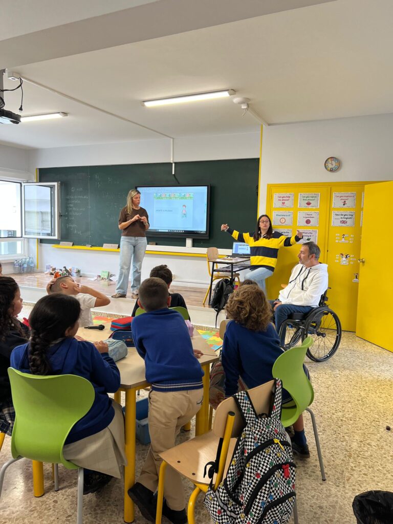 ASPAYM Galicia sensibiliza en seguridad vial en distintos centros educativos de la región. El pasado lunes concienciamos en precaución al volante a estudiantes de 3° y 4° de primaria del CPR Plurilingüe Atocha Betanzos, de la mano del presidente de ASPAYM Galicia, Francisco Javier Vieites.