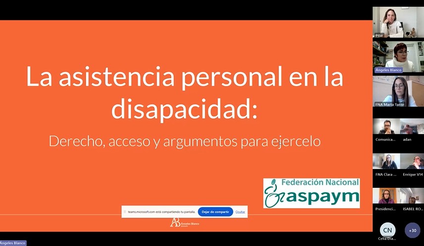 Asimismo, su ponencia se ha visto enriquecida por la participación excepcional de Pilar Aguilar, una madre de un joven con discapacidad que ha solicitado la Asistencia Personal, que ha compartido ante las personas participantes su experiencia como demandante de este servicio.