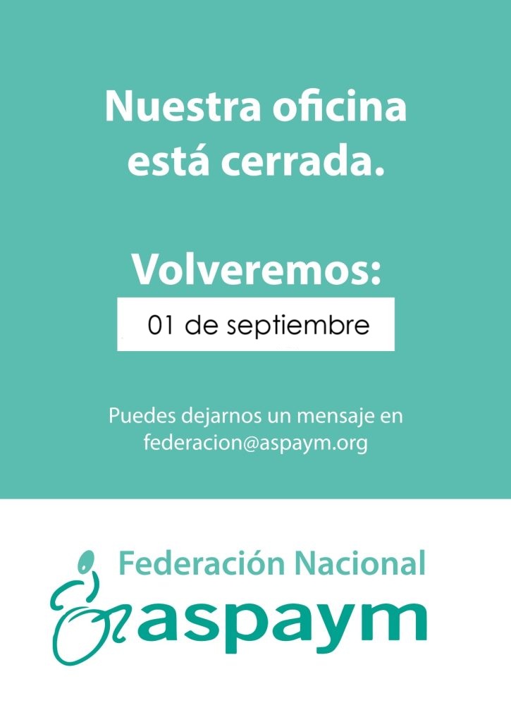 Para cualquier urgencia, podéis seguir consultándonos a través del correo electrónico federacion@aspaym.org