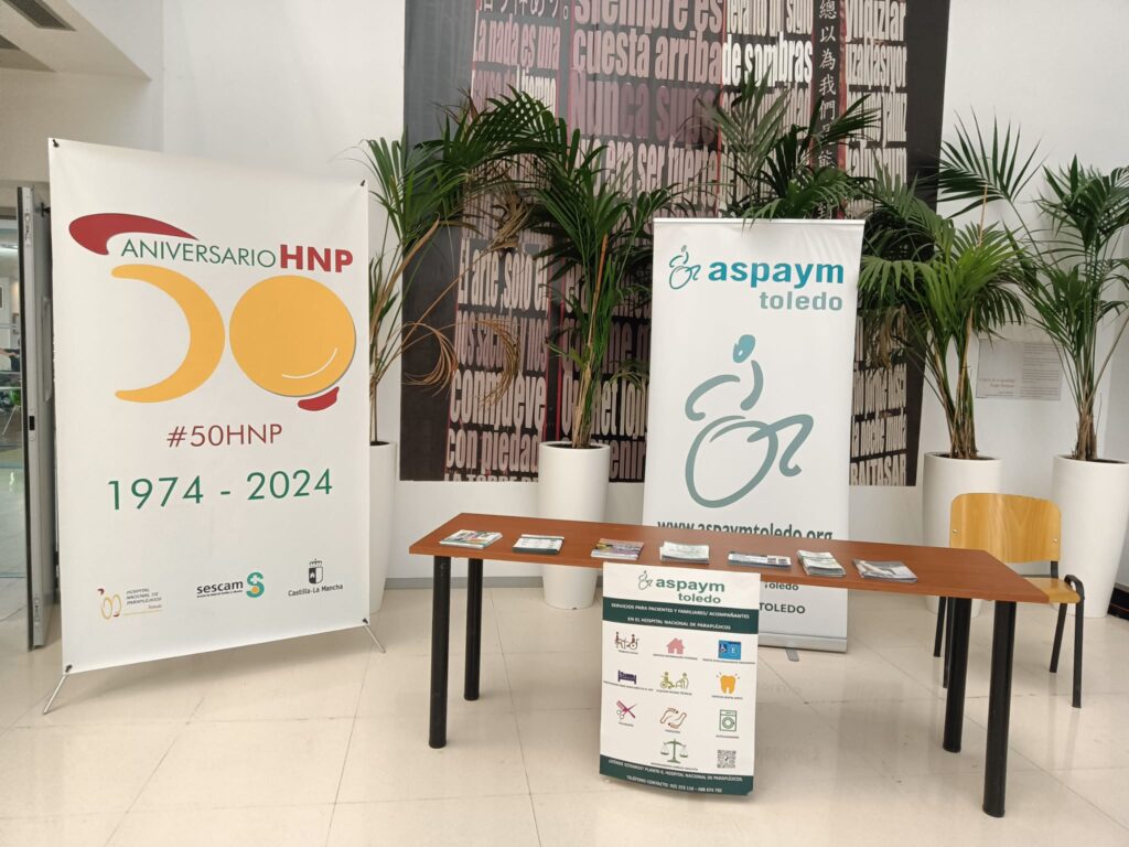 ASPAYM Toledo ha celebrado este martes 11 de noviembre una jornada informativa y de exposición en el Hospital Nacional de Parapléjicos, en el hall principal del centro, durante la mañana del día. Durante la jornada, los asistentes han podido visitar el stand informativo de nuestra entidad federada.